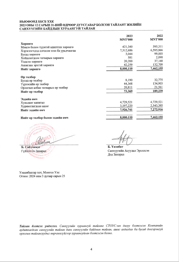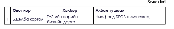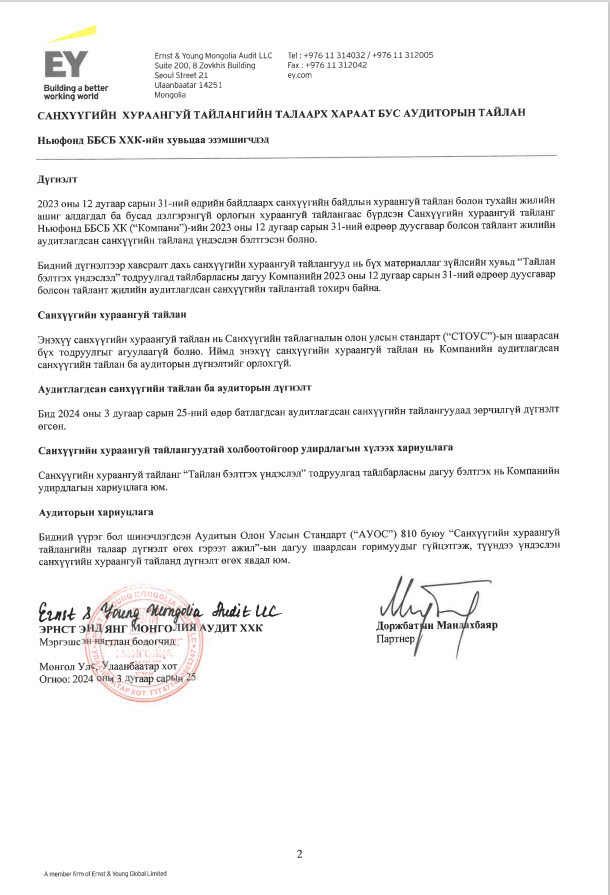 НЬЮФОНД ББСБ ХХК ЗАСАГЛАЛЫН БҮТЭЦ