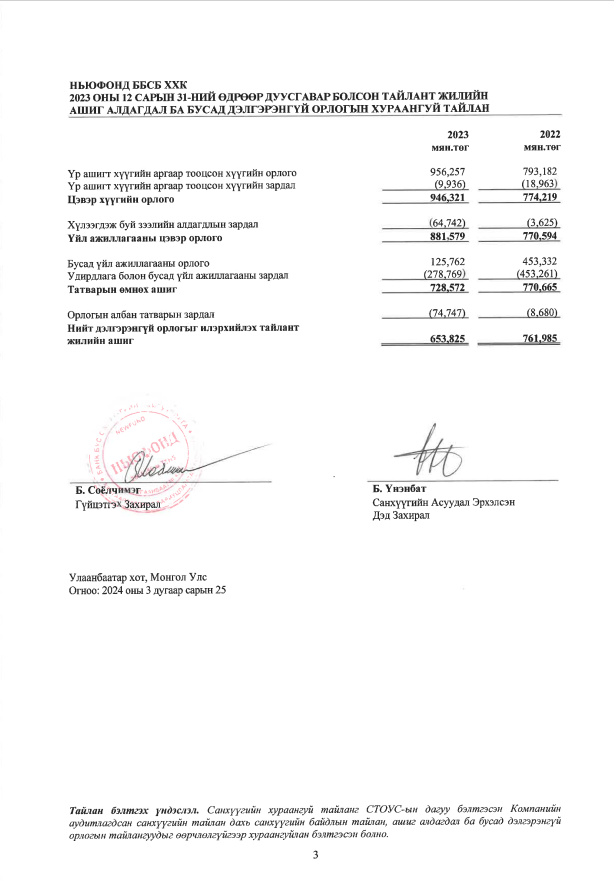 ТУЗ-ийн 2023 оны жилийн үйл ажиллагааны тайлан