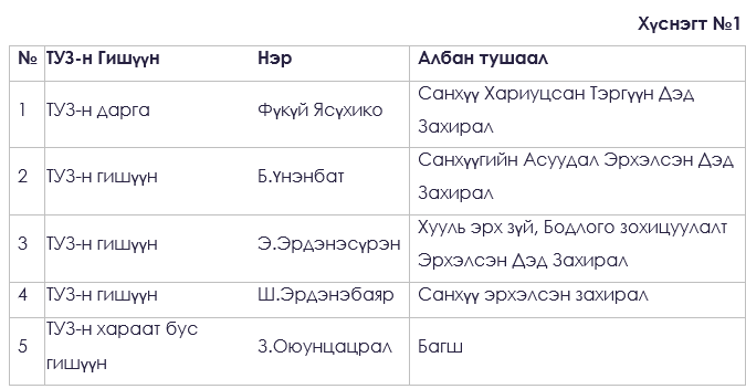 4. ТУЗ-н гишүүдийн хамрагдсан сургалт, формын мэдээлэл