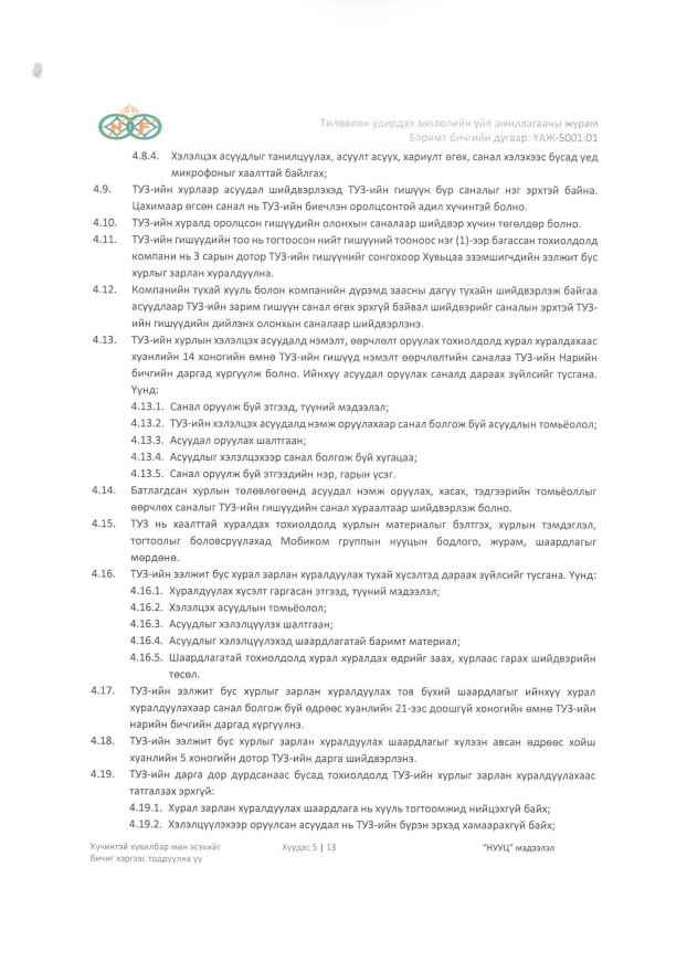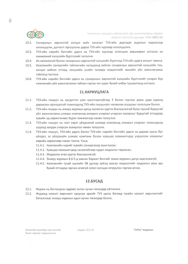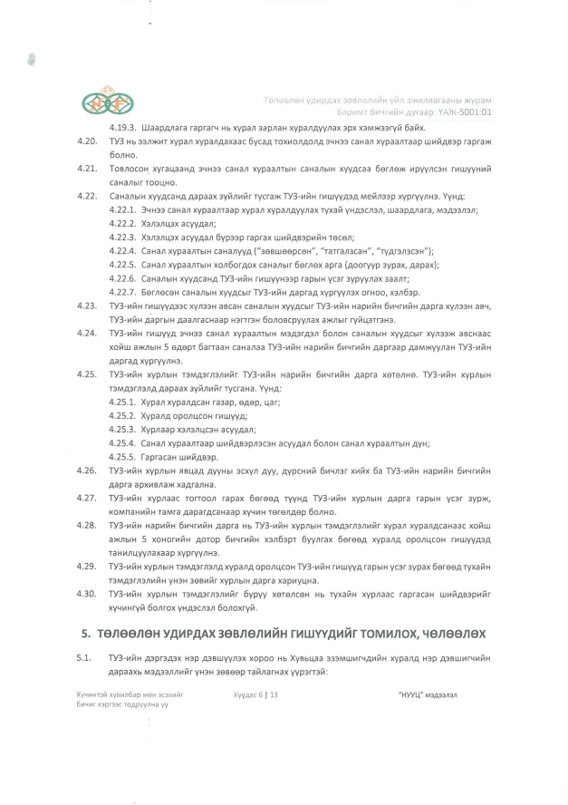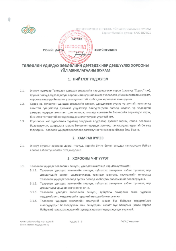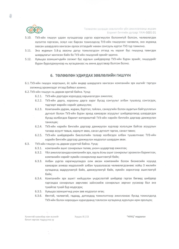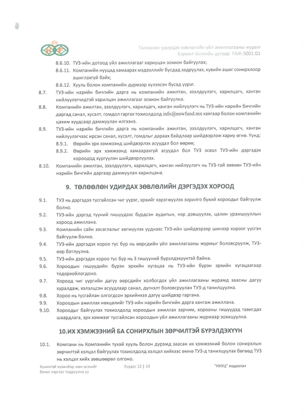 2022 оны 10 дугаар сарын 5-ны өдөр батлагдсан “Ньюфонд” ББСБ ХХК-ийн “ТУЗ-ийн үйл ажиллагааны журам”-ын дагуу ТУЗ-ийн үйл ажиллагааг зохион байгуулж, гүйцэтгэлийн арга замыг тогтоож, хэрэгжүүлэх бүтцийн дагуу чанд мөрдөж ажилласан болно.