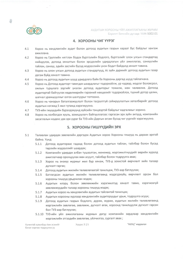 Төлөөлөн удирдах зөвлөлийн дэргэдэх аудитын хорооны үйл ажиллагаа